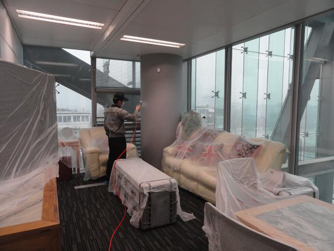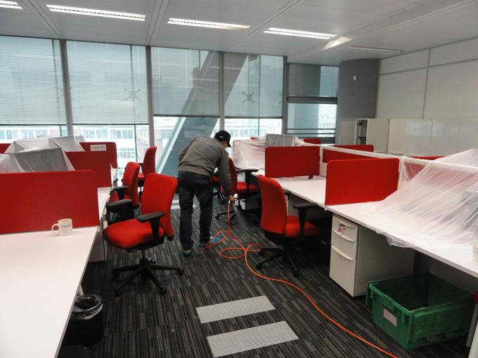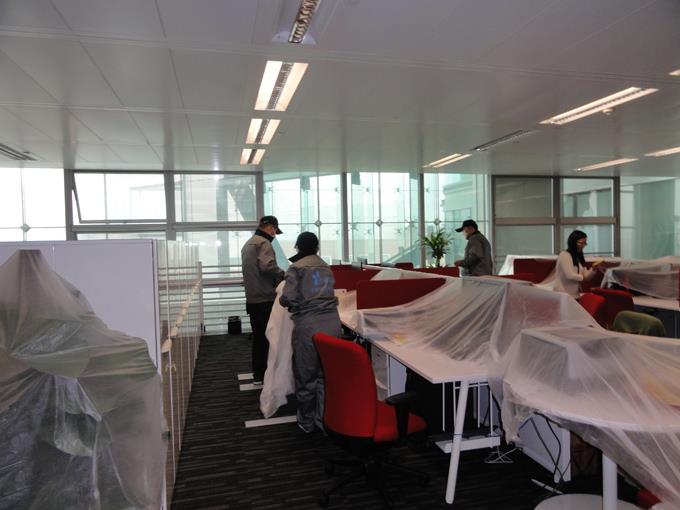 施工人員對辦公區(qū)進(jìn)行治理。